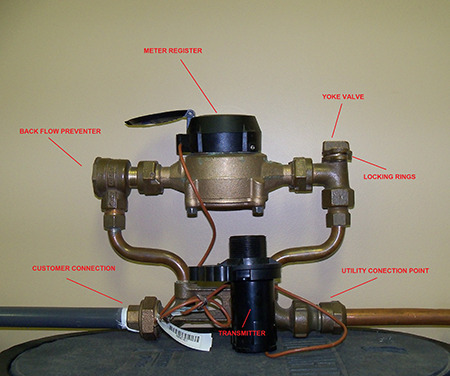 This is the point where the Members responsibility begins. To make a connection or repair, the meter box should be removed and care take to prevent crimping the Associations copper service line on the inlet side or pulling the meter yoke off.